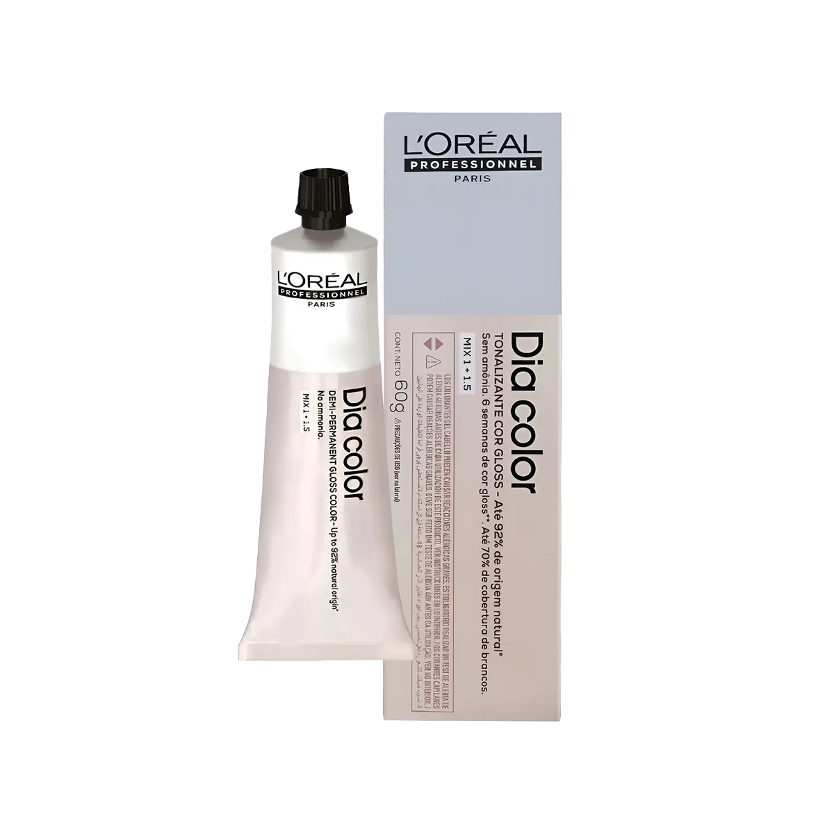 Tonalizante L’Oréal Professionnel Dia Color  é um tonalizante alcalino, demipermanente, sem amônia, que confere luminosidade extraordinária aos fios. Sua fórmula conta com até 92% de ingredientes de origem natural, proporciona maciez e cuidado. Possui uma tecnologia exclusiva de reposição da melanina que reproduz a cor, preenchendo falhas e reavivando a tonalidade por até 6 semanas, além de cobrir até 70% dos cabelos brancos.