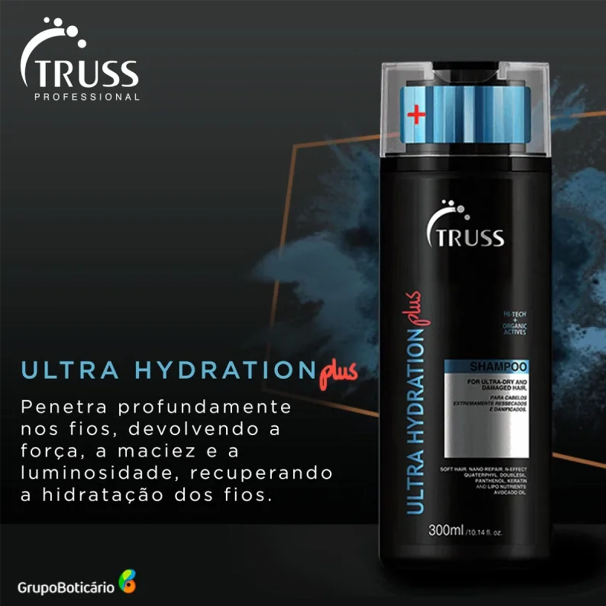 Seus resultados podem ser notados desde a primeira aplicação e são potencializados ao unir o shampoo ao uso dos outros produtos da linha TRUSS ULTRA HYDRATION PLUS.